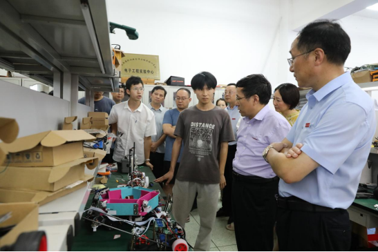 校领导先后看望了信息工程学院智能汽车、电子设计竞赛团队和机械工程学院先进成图技术与产品信息建模设计、金相技能大赛团队,对师生团队在炎热夏天仍然潜心钻研、坚持学习的拼搏奋斗精神表示了充分肯定和高度赞赏,现场就参赛作品进行了技术交流和专业指导。在学生社区慰问勤工助学学子时,校领导亲切询问了学生工作内容、暑期规划及生活安排等,希望同学们以高昂饱满的工作热情和认真负责的主人翁精神在助学实践中得到锻炼成长。在图书馆走访学生留校考研情况时,校领导们与留校生亲切交流,详细了解同学们的学习和生活情况,勉励大家要合理规划假期时间,守住耐心和恒心,做到劳逸结合、全面发展。现场听取了相关部门为暑期留校学生提供服务保障的汇报,强调要积极回应学生的诉求与关切,确保提供周到细致的服务和保障。