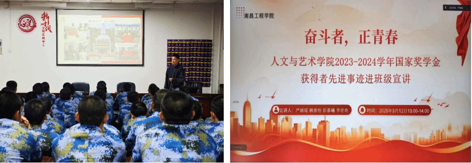 46名国家奖学金获得者组建宣讲团,通过专题报告会、成长分享沙龙、云端微课堂等多元化形式,深入各班级和学生楼栋开展经验交流。宣讲团成员系统分享学业规划、科研创新、竞赛实践等方面的成功经验,水利工程学院闻慧汝同学通过“时间折叠术”巧妙运用时间管理,助力低年级学生掌握高效学习方法;机械工程学院赖越同学结合全国大学生机械创新设计大赛获奖经历,详细解析科创项目孵化路径;人文与艺术学院赖春怡同学结合全国大学生广告艺术大赛获奖经历,深度剖析艺术创作和设计思维的培养;瑶湖学院李迎博同学从自身经历出发,分享如何在实践中积累经验、在挑战中实现自我超越,为在场同学提供了宝贵的经验借鉴。与会同学纷纷表示,通过与国家奖学金获奖者的深度交流,不仅获得了可复制的学业提升策略,更深刻感受到榜样力量的感召,进一步明确了奋斗目标。