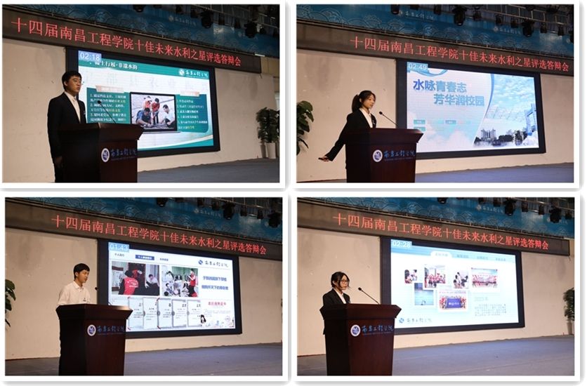 经过个人申报、学院推荐、资格审查、线上投票等环节,共有24名优秀学子脱颖而出,入围学校答辩环节。同学们通过汇报演讲,讲述自己的奋进历程及取得的成绩。他们中有抗洪一线镌刻红色坐标的青春突击队员,有实验室攻克难题的科研尖兵,有将节水理念融入健美操的跨界传播者,也有用算法守护水利遗产的数字守堤人。一位位南工学子的优秀事迹真实生动、催人奋进,在服务社会中践行初心使命、在创新创业中贡献强国力量、在筑梦科研中点亮学术之光、在赛事舞台上诠释青春热爱。现场氛围热烈、精彩纷呈,现场观众被候选人的精彩表现和青春热情所感染,阵阵掌声不断。