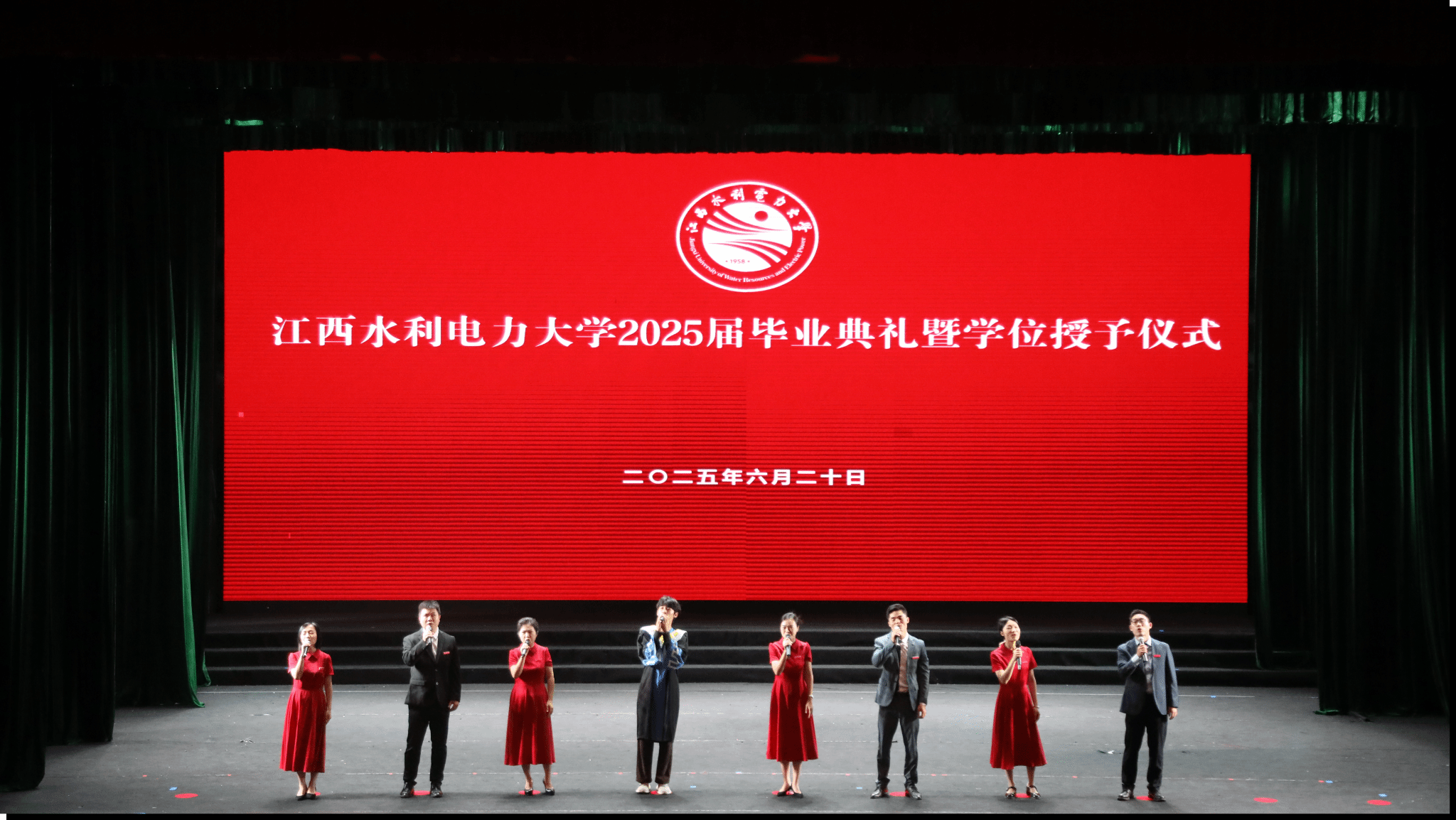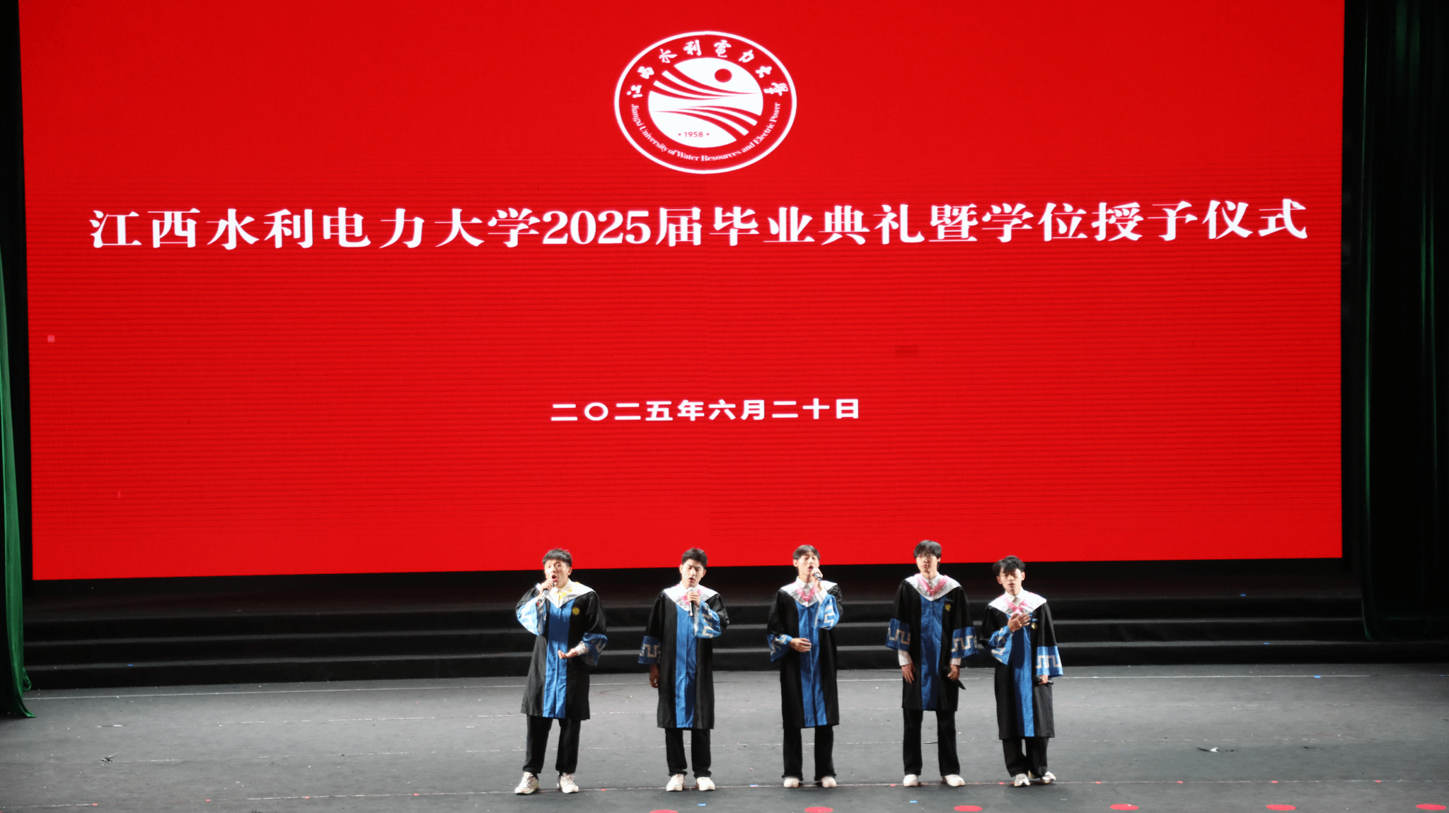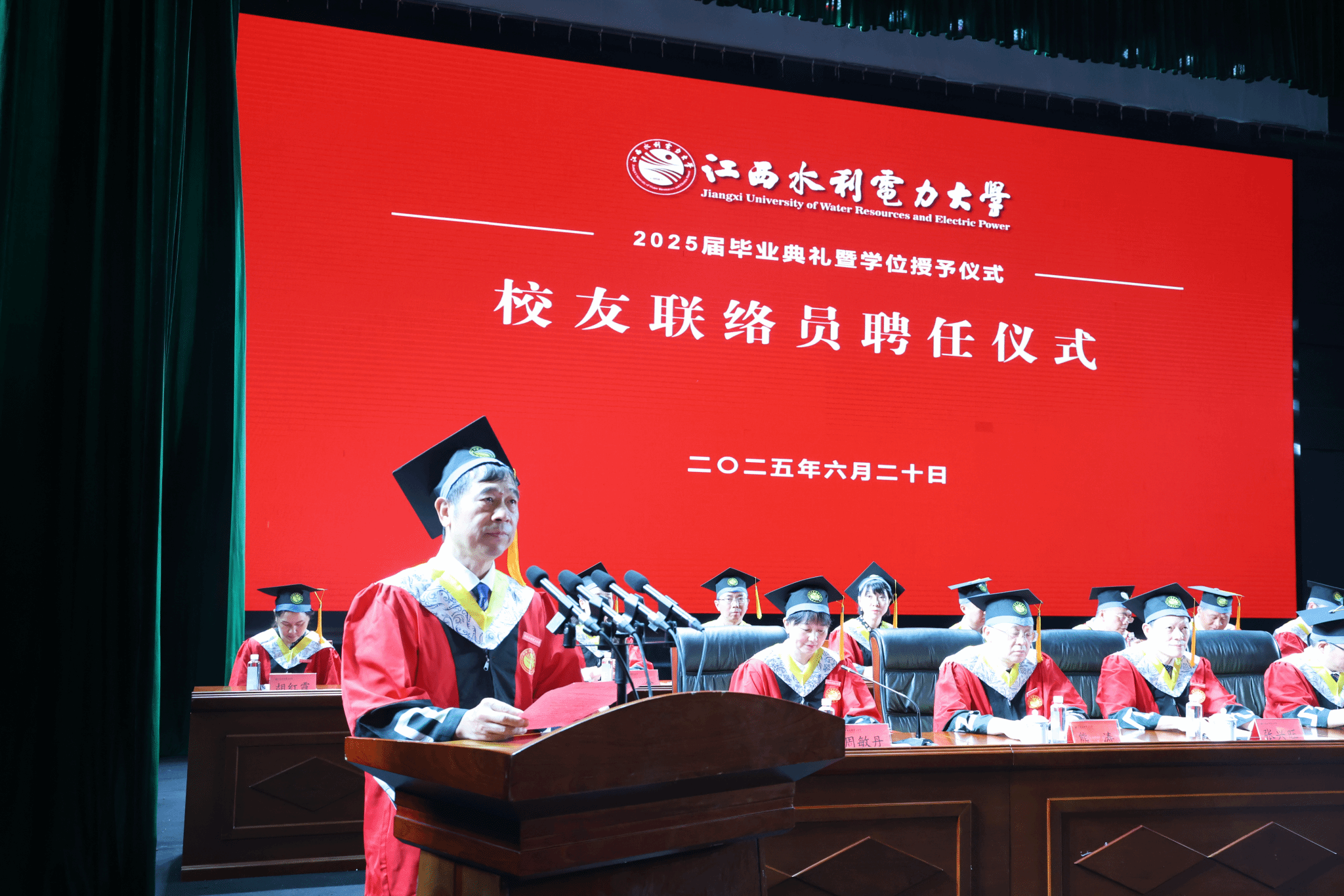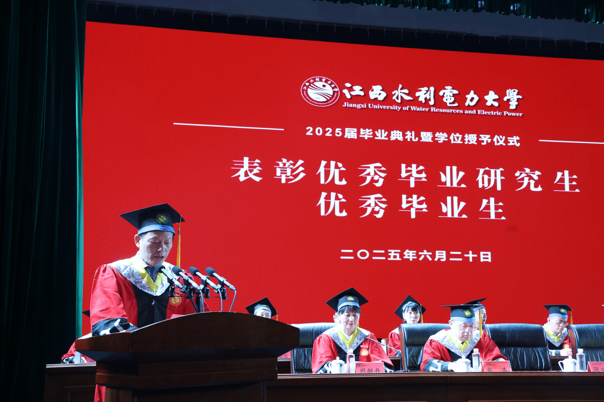 6月20日上午,江西水利电力大学2025届毕业典礼暨学位授予仪式在瑶湖艺术中心隆重举行。校党委书记汪胜前,校长刘祖文等在家校领导出席典礼,学校学位评定委员会委员,相关职能部门负责人,各学院党委和行政负责人,辅导员、班主任和家长代表及硕士、本科毕业生代表等参加。副校长周敏丹主持典礼。