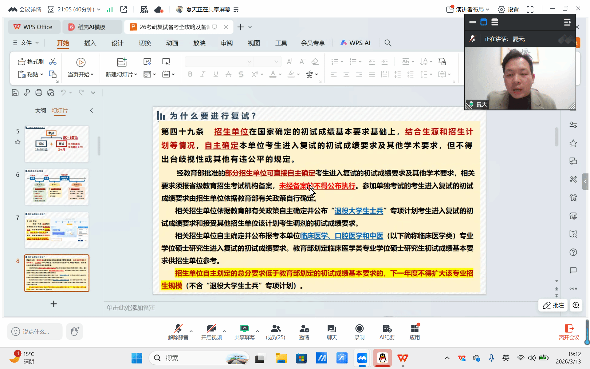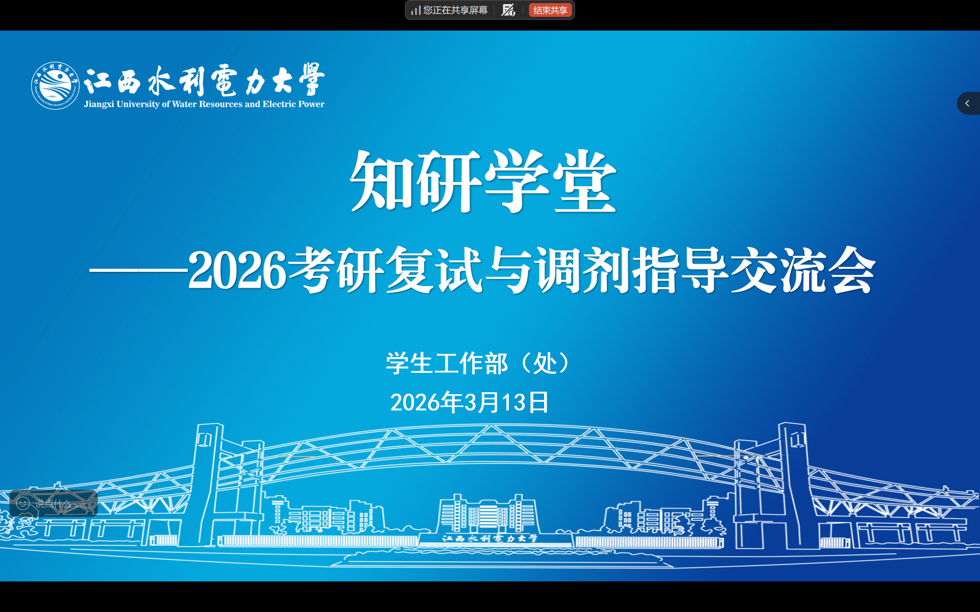 3月13日晚,我校2026届考研复试与调剂专项指导活动在腾讯会议如期举行。活动特邀考研规划讲师杨光老师担任主讲,各学院考研学子积极参加。
