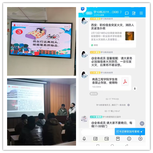 开展一期火灾防范专题宣传教育。结合消防安全宣传活动,利用学生公寓电子屏、宣传栏、学生工作群以及公寓微讲堂等阵地,多渠道多形式开展“宿舍火灾防范”安全主题教育,以血的教训案例敲响警钟,强化保护生命安全,从每个学生自我做起,教育学生自觉遵守消防安全管理规范,养成安全文明行为习惯。