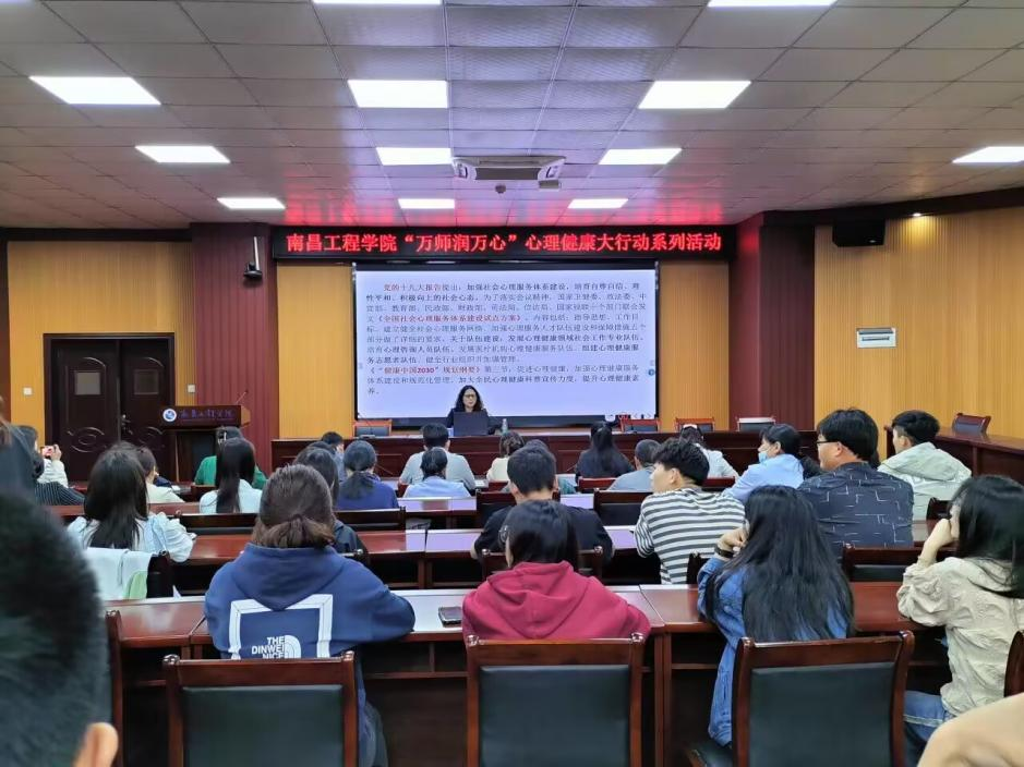 5月6日下午,我校邀请江西省“万师润万心”讲师团胡盛华教授在大学生活动中心B100作“积攒心理资源,培育幸福文化——高校教师心理调适”主题讲座。各学院和学生社区辅导员、班主任以及学生公寓管理员等90余人参加。
