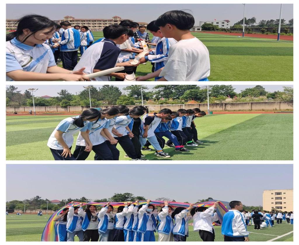 仪式结束后,我校心理科普师生志愿者带领文港初级中学200余名学生在体育场进行了心理素质拓展活动,通过进行“桃花朵朵开”“车轮滚滚”“能量传输”“击鼓颠球”环节,让中学生们在体验中认识到人际交往、团队协作的重要性,促进了学生身心健康发展。(文/桂丽琴 图/游锦韬 一审/桂丽琴 二审/焦晶 三审/熊涛)
