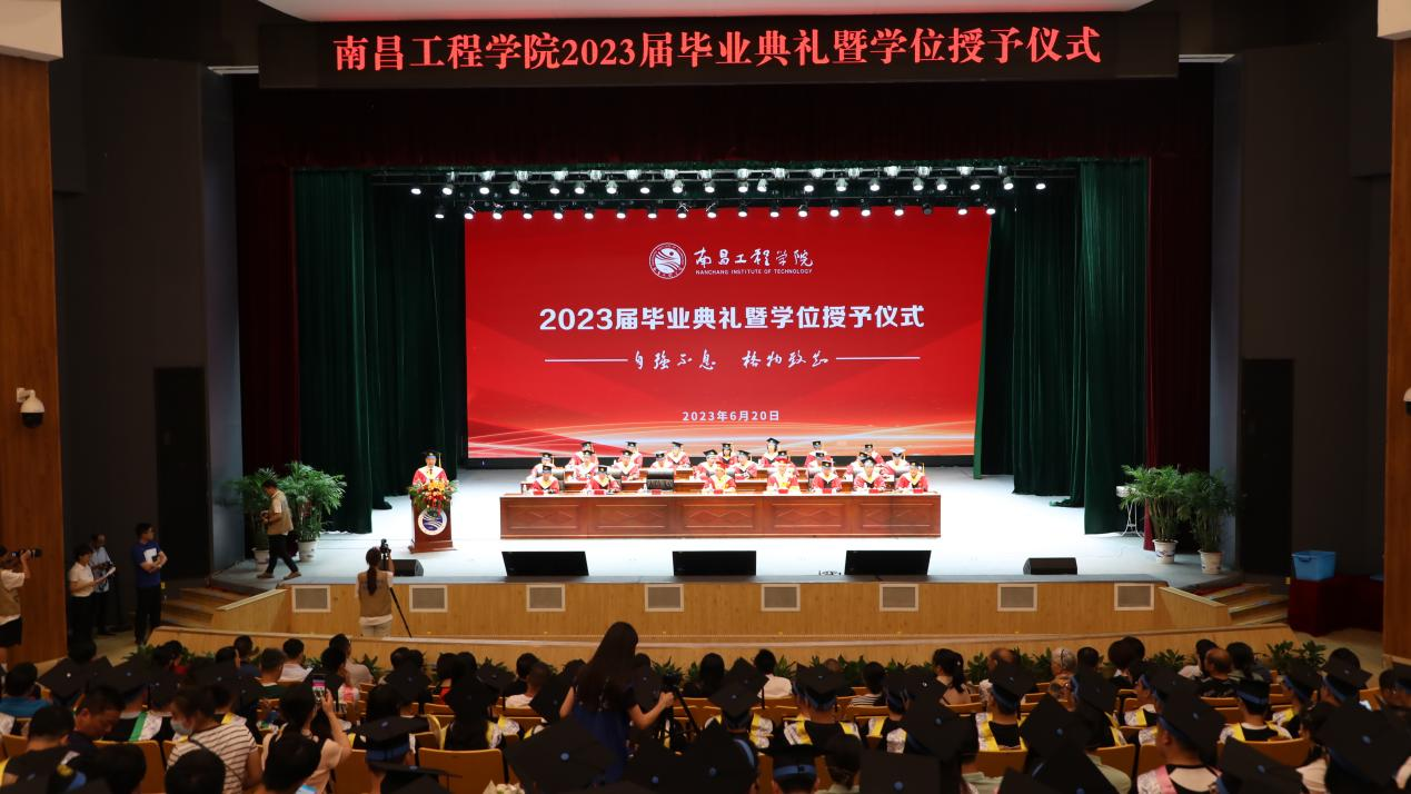 6月20日上午,我校2023届毕业典礼暨学位授予仪式在瑶湖艺术中心举行。在家校领导、学位评定委员会委员,相关职能部门负责人,各学院党委和行政负责人,辅导员和家长代表及在校毕业生参加活动。校党委委员、副校长周敏丹主持典礼。