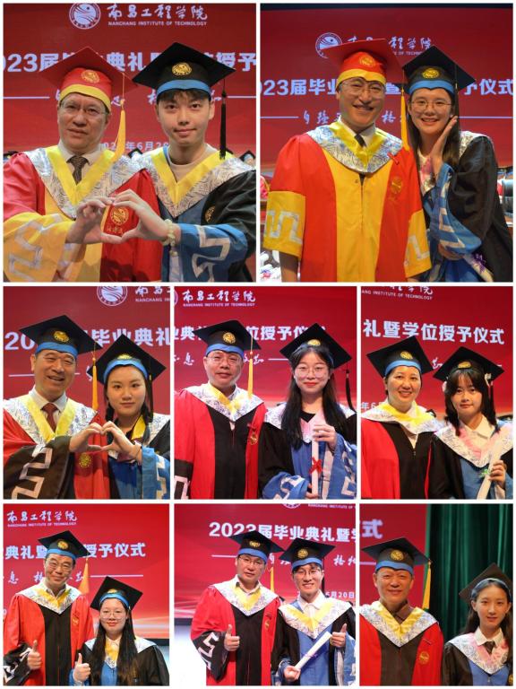 出席活动的全体校领导为受表彰的毕业生代表颁发了荣誉证书。伴随着音乐声,与会毕业生代表依次上台,校领导为毕业生们拨穗正冠并合影留念。