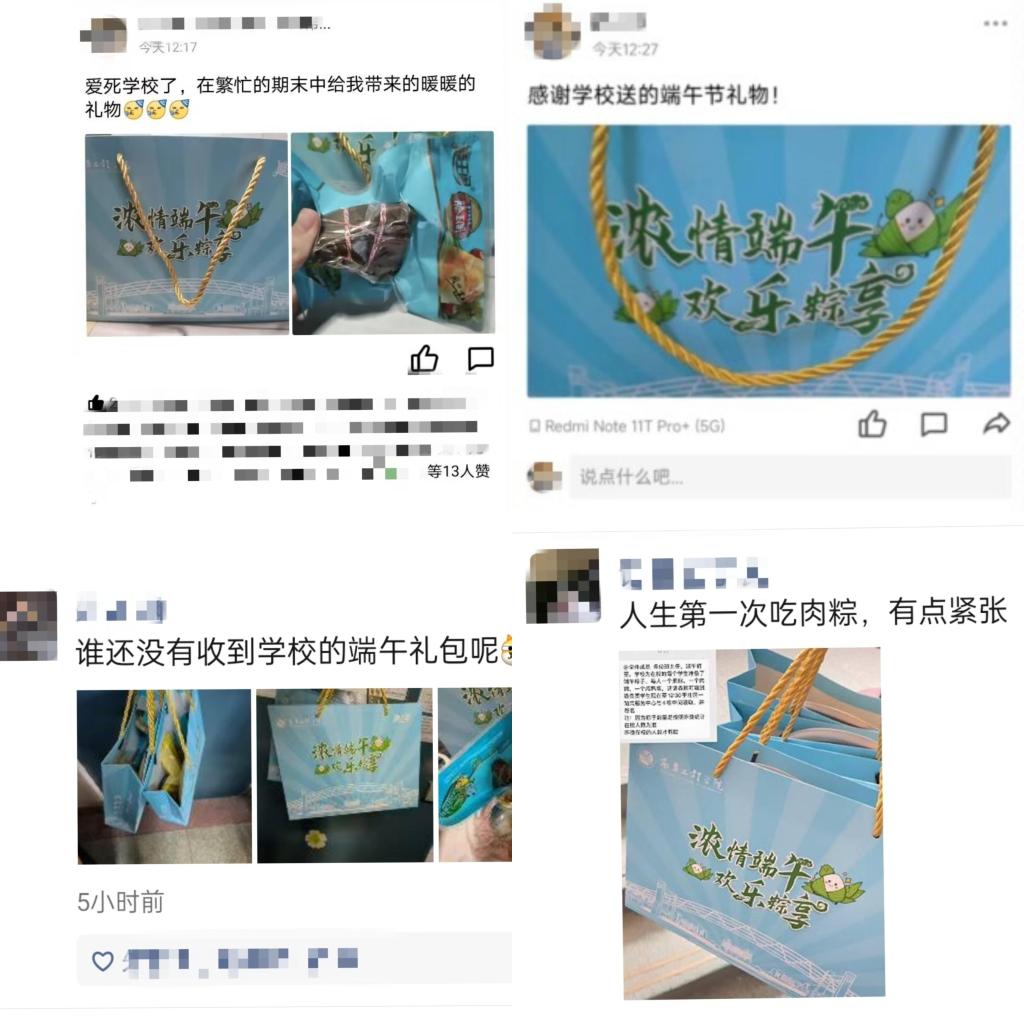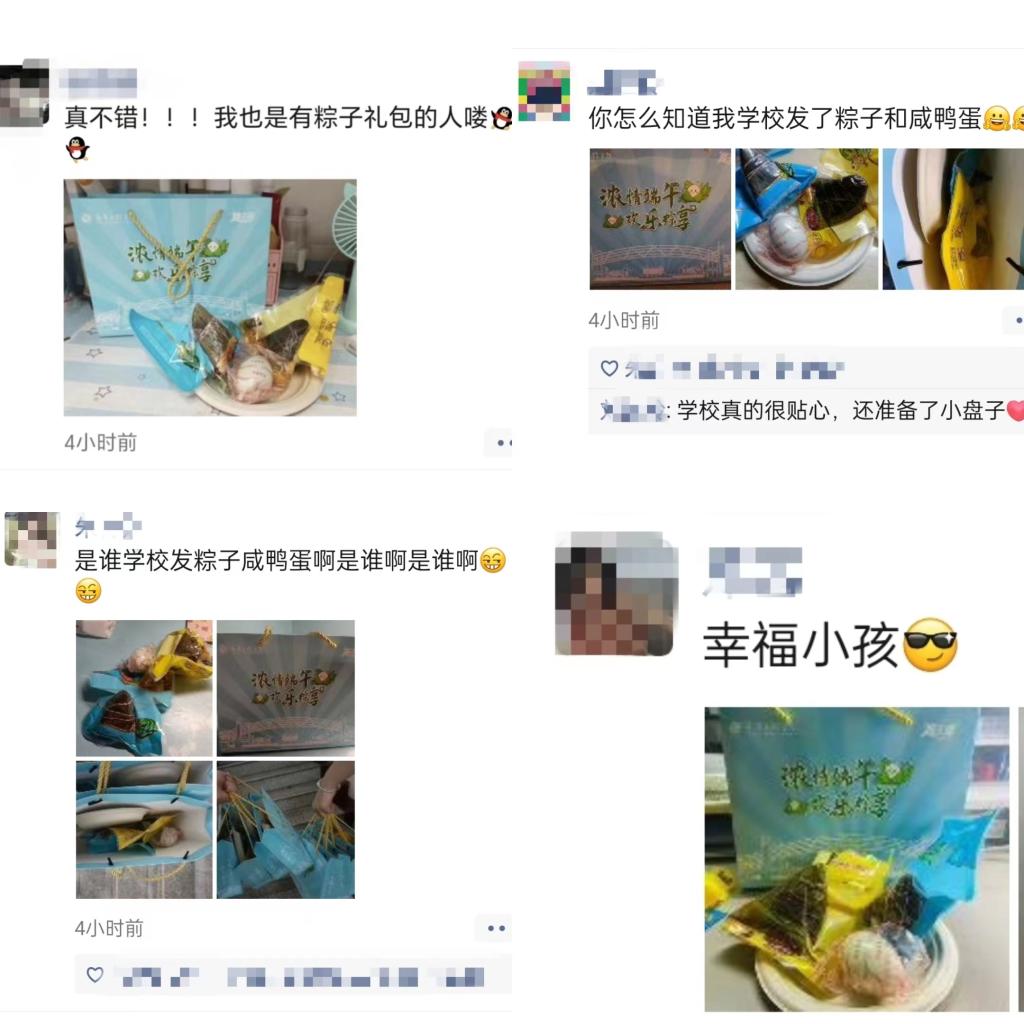 学生代表收到学校老师送来的端午节礼物,欢呼道:“谢谢老师!”“祝老师端午安康!阖家欢乐!”同学们收到粽子后,也纷纷发朋友圈晒幸福!