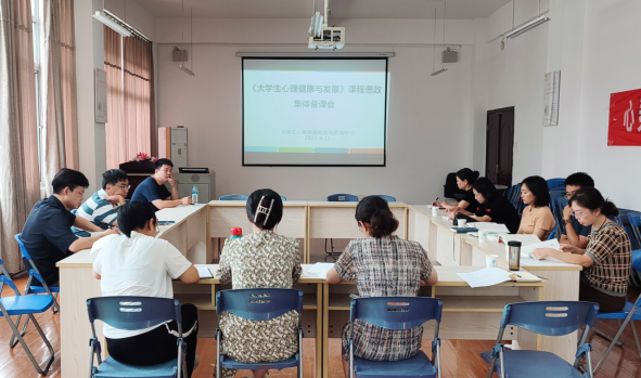 9月21日上午,《大学生心理健康与发展》课程思政集体备课会在大学生活动中心A410举办,我校10余名心理健康专兼职教师参加会议。
