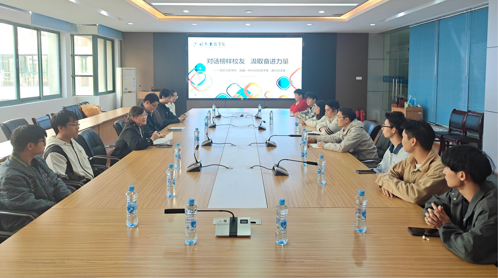 10月31日,信息工程学院在信工楼B204举办“白晶-04计算机奖学金”获奖学生座谈交流会,2004级计算机科学与技术专业校友、福克斯复合材料(常州)有限公司总经理吴英春和江西汇砼亿新材料有限公司销售经理肖雄、学院学工办负责人、辅导员以及2025年“白晶—04计算机奖学金”获奖学生参加。