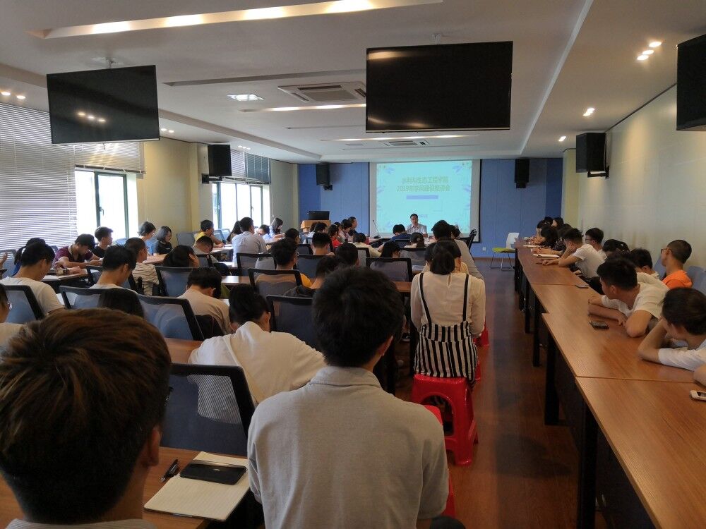 为推进水利与生态工程学院学风建设各项活动落实落细,夯实学风建设基础,注重学风建设实效,5月21日,水利与生态工程学院在逸夫楼B400开展学风建设推进会,院党委副书记张修祥、组织员袁雅思、全体辅导员、全体班主任、2017级和2018级班长、团支书、学习委员、纪检委员和学生代表、学生会主席团成员、纪检部全体成员、学生会其他部门主要学生干部等100余人参加会议。会议由袁雅思主持。