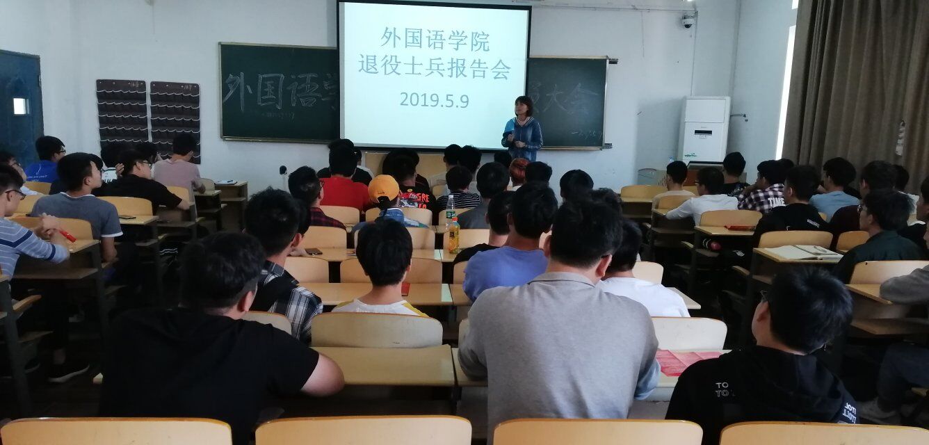 为响应国家征兵政策要求,落实南昌工程学院2019年征兵工作实施方案,5月9日外国语学院在南教学楼b315召开了退役士兵报告会。外国语学院全体男生参加会议,外国语学院党总支书记朱代洪以及外国语学院分团委书记王聪出席此次会议。