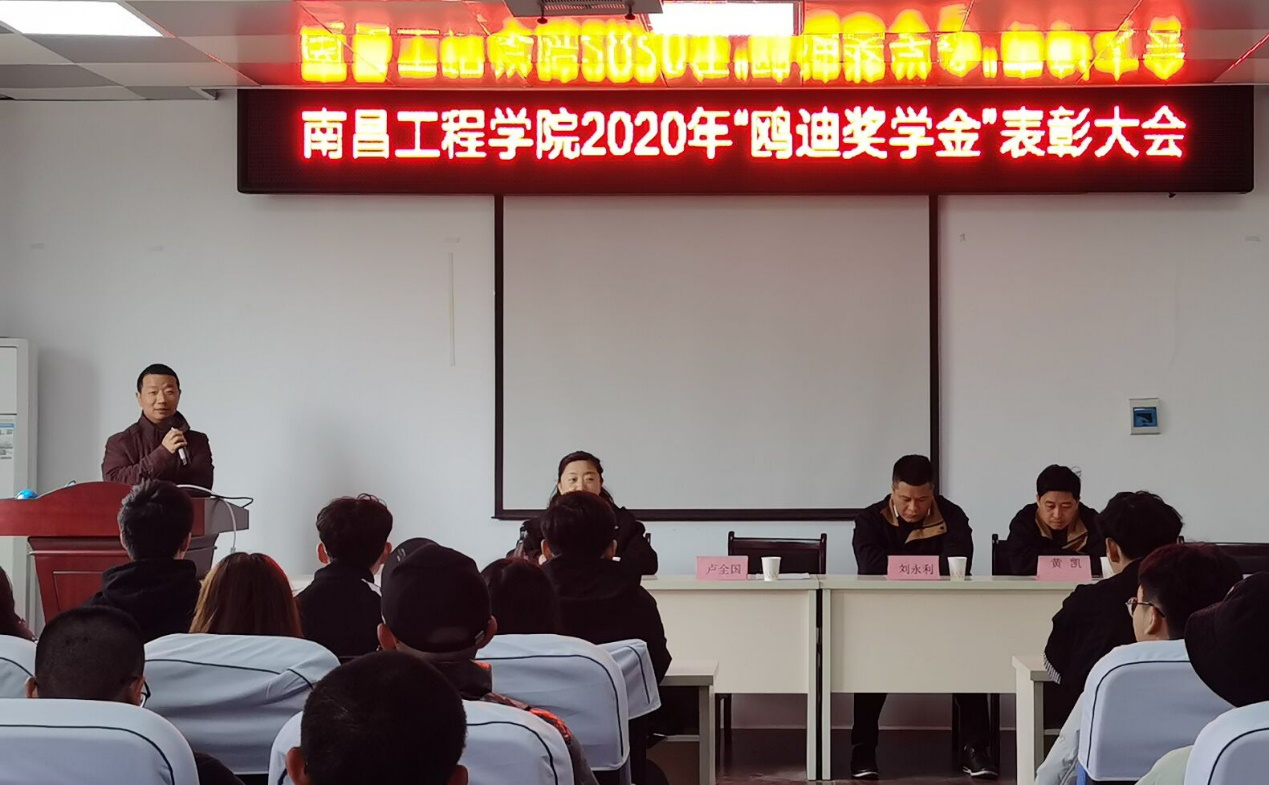 11月26日上午10点30分,南昌工程学院2020年“鸥迪奖学金”表彰大会在机电楼A304隆重举行。出席表彰大会的有江西鸥迪铜业有限公司设备科科长黄凯、江西鸥迪铜业有限公司专员刘永利、机械与电气工程学院院长卢全国。学院学生工作负责人、相关辅导员老师及21位“鸥迪奖学金”获奖同学、团学干部和各年级学生代表等共计70余人参加了表彰大会。