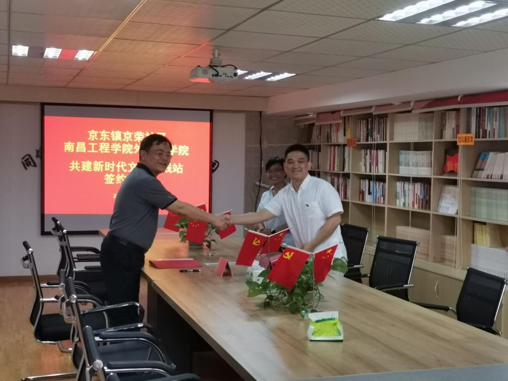 7月14日下午,外国语学院与“全省百家新时代文明实践示范点”京东镇京荣社区举办新时代文明实践站结对共建签约仪式。外国语学院相关负责人,京东镇纪委、京荣社区负责人,外国语学院大学生暑期社会实践团全体成员参加活动。