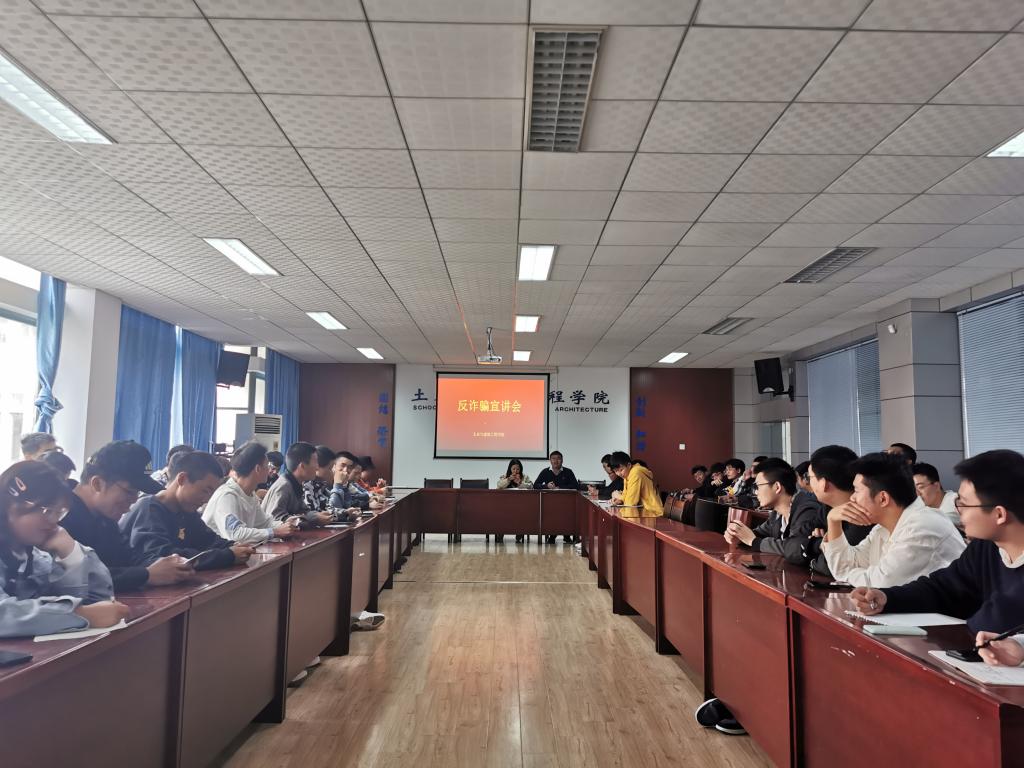 为提高学生防诈骗意识,保护其生命财产安全,土木与建筑工程学院于11月3日在教育技术楼B207会议室举行防诈骗宣讲会,会议由辅导员万珊老师主持、涂雪仁老师及本学院各班级班长参加。