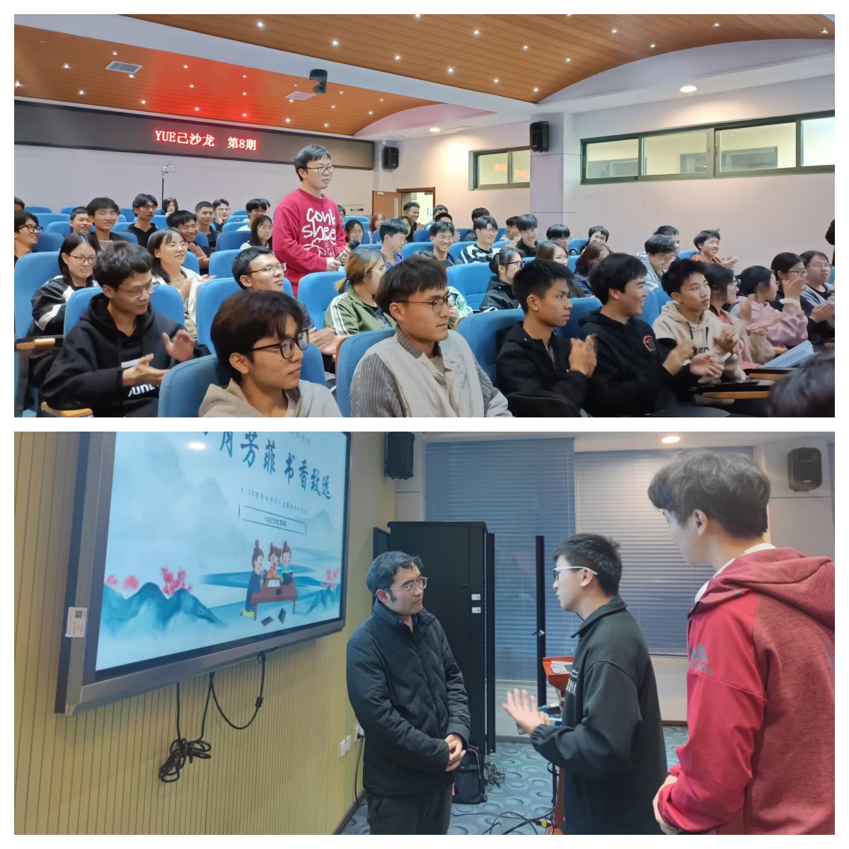 4月23日,榫卯工作室“YUE己”沙龙第8期在我校明德报告厅举行。此次沙龙由马克思主义学院教师王诚德主讲,以线上+线下相结合的形式同步开展。