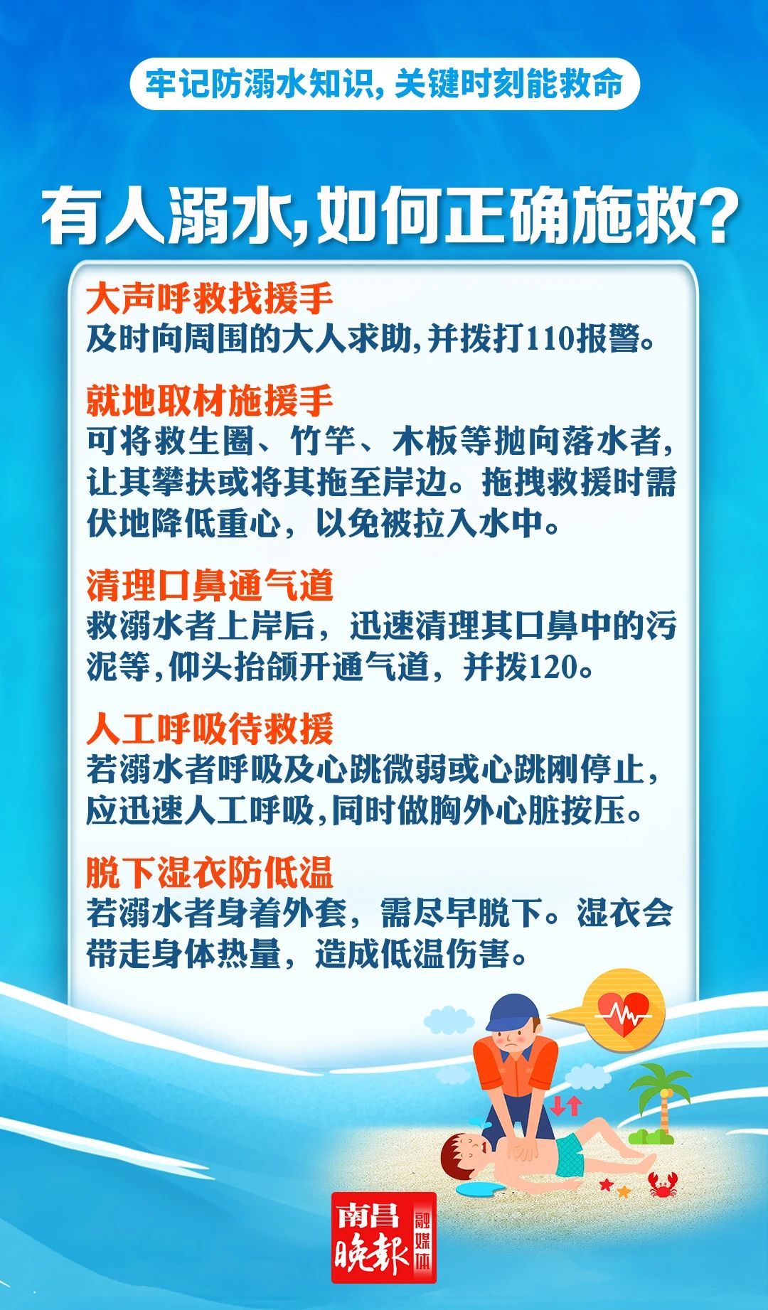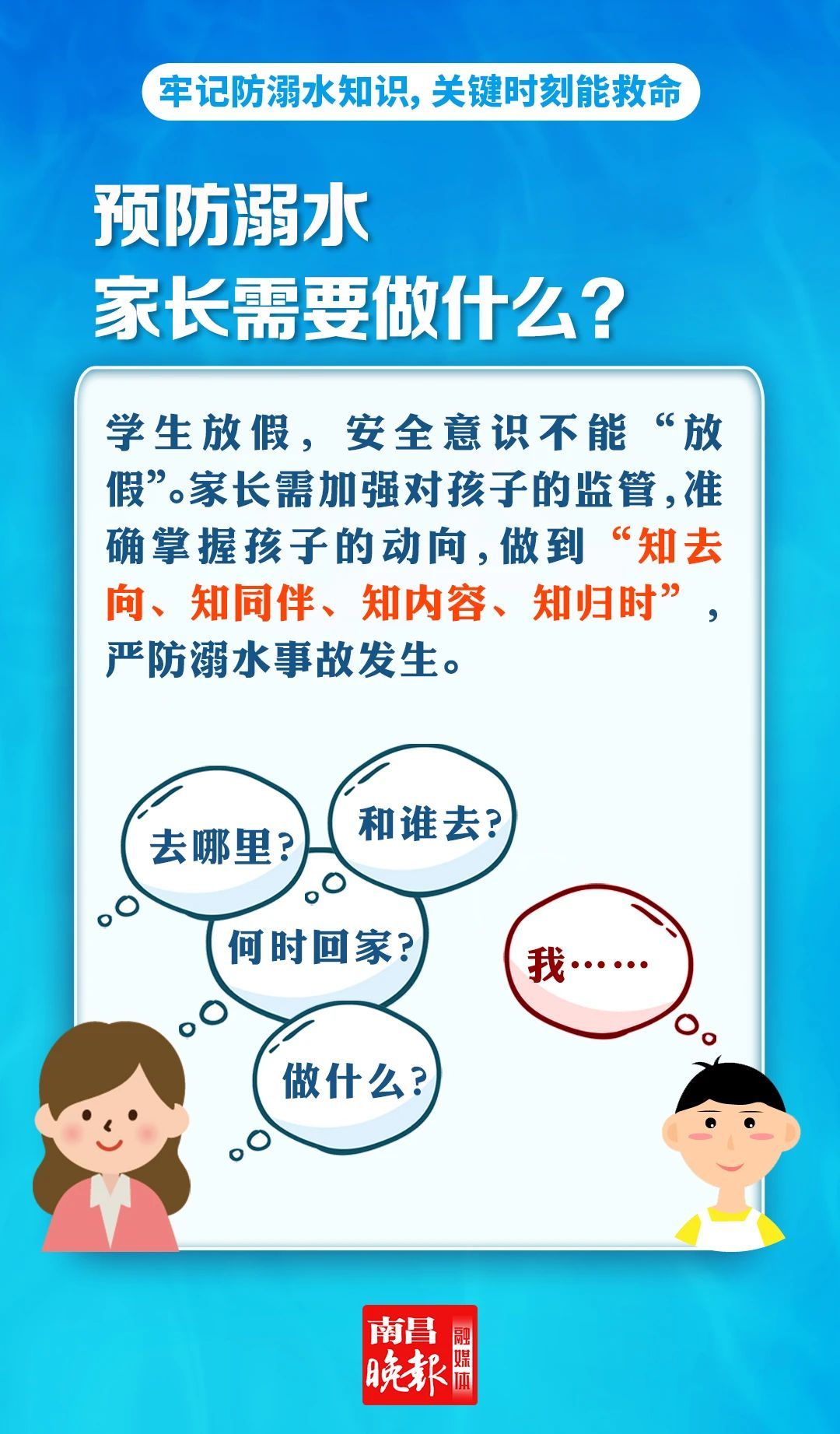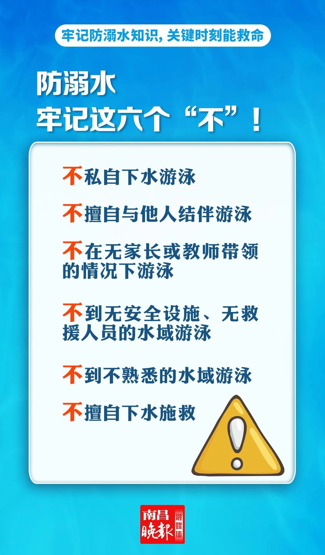 夏季是溺水事故高发期,请广大家长经常性对孩子进行防溺水安全教育,切实让孩子做到“六不”,即:不私自下水游泳,不擅自与他人结伴游泳,不在无家长或教师带领的情况下游泳,不到无安全设施、无救援人员的水域游泳,不到不熟悉的水域游泳,不擅自下水施救。尤其要教育孩子,遇到同伴溺水时应立即寻求成年人帮助,切勿盲目下水救援。