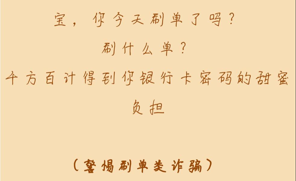① “刷单前问问自己,动动手指就能赚钱的好事,为啥就能轮到你?”
