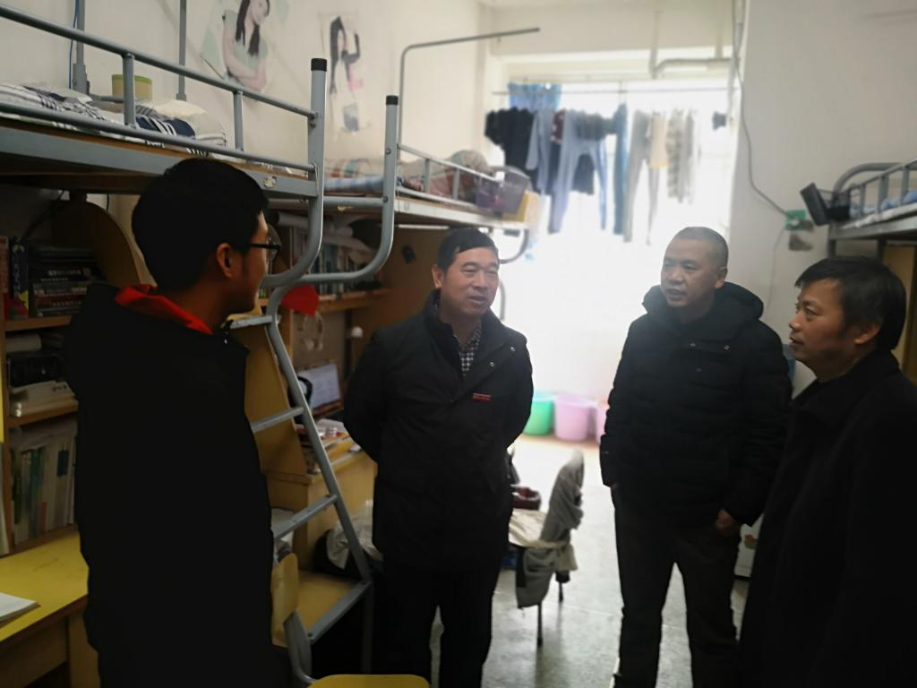 2020年1月2日中午,校党委副书记吴泽俊在学工处副处长高明、机电学院党委书记高週全、副书记陈方红等陪同下,来到学生公寓10栋A227,走访慰问困难学生并送上慰问金。