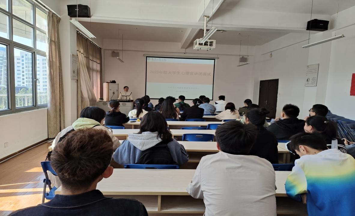 面试由学生自我展示、评委自由提问两个环节组成。最终心理中心根据各位应聘学生的言语表达、自我意愿、综合素养等方面选出29位学生组建了2023年校大学生心理宣讲团。
