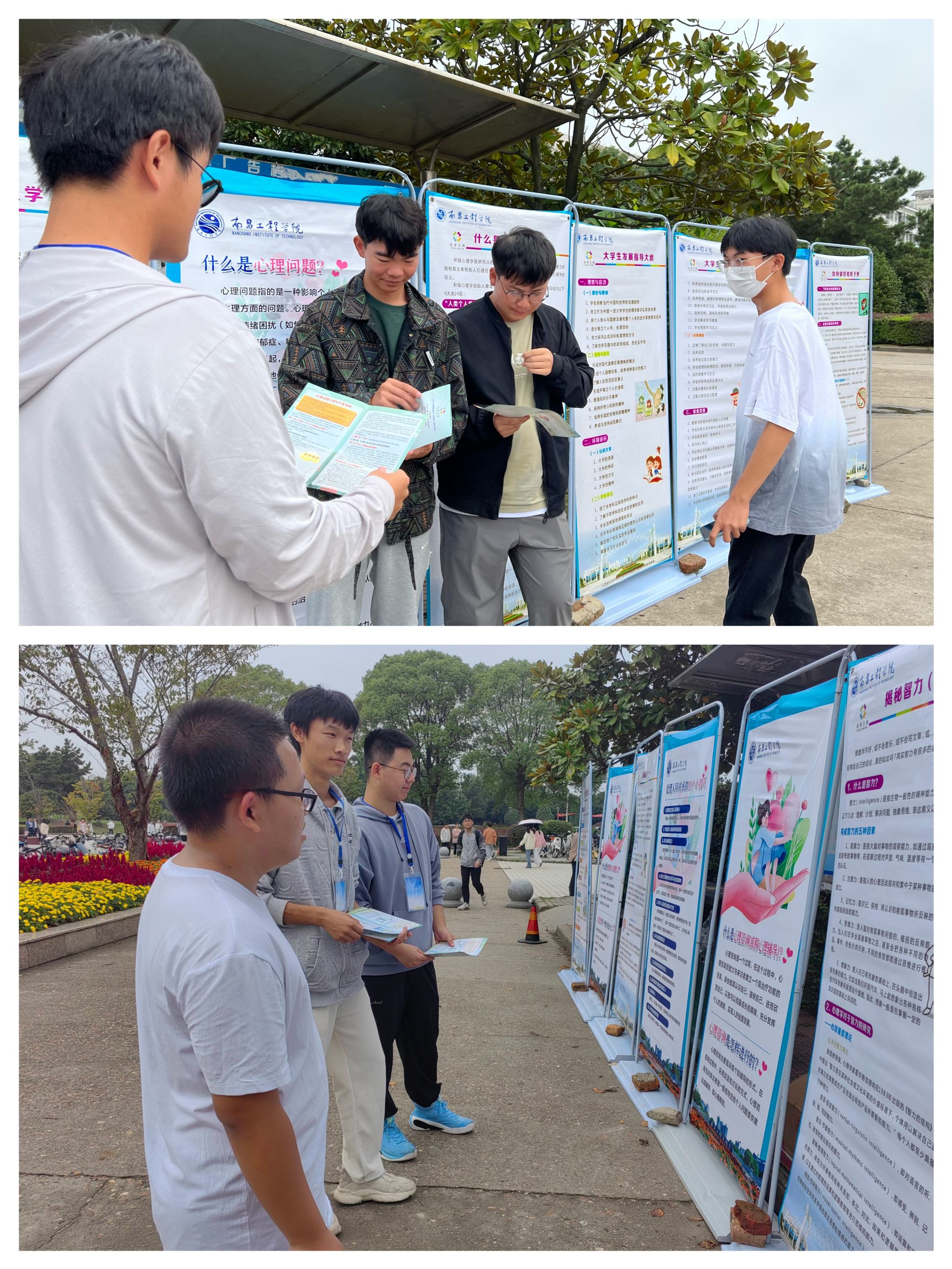 在润园食堂门口举办了心理健康知识科普展览和宣讲活动。心理科普志愿者通过为路过师生讲解心理健康知识海报,发放心理健康知识宣传册,向我校师生宣传精神卫生心理健康知识,呼吁大家关注自身精神世界,呵护身心健康,共建美好未来!