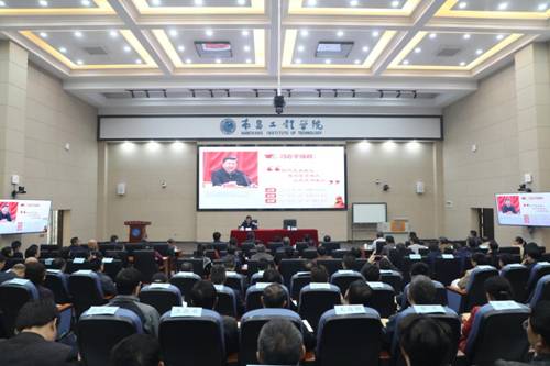10月29日上午,南昌工程学院党委书记徐兰宾讲授题为《答好“初心”之问 解好“使命”之题 在新时代的浩荡春风里奋楫扬帆破浪前行》的专题党课。省委第二批主题教育第十二巡回指导组副组长邱晓辉应邀出席活动。该校领导、副处级以上干部、徐兰宾所联系学院教师党员和所联系班级学生党员、全校辅导员、调研小组成员共计200余人聆听党课。