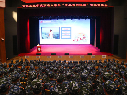 为热烈庆祝新中国成立70周年,用激扬的青春故事,感召青年学子胸怀祖国、担当使命、矢志奋斗,南昌工程学院“青春告白祖国”宣讲团面向1100余名2019级新生开展宣讲活动。