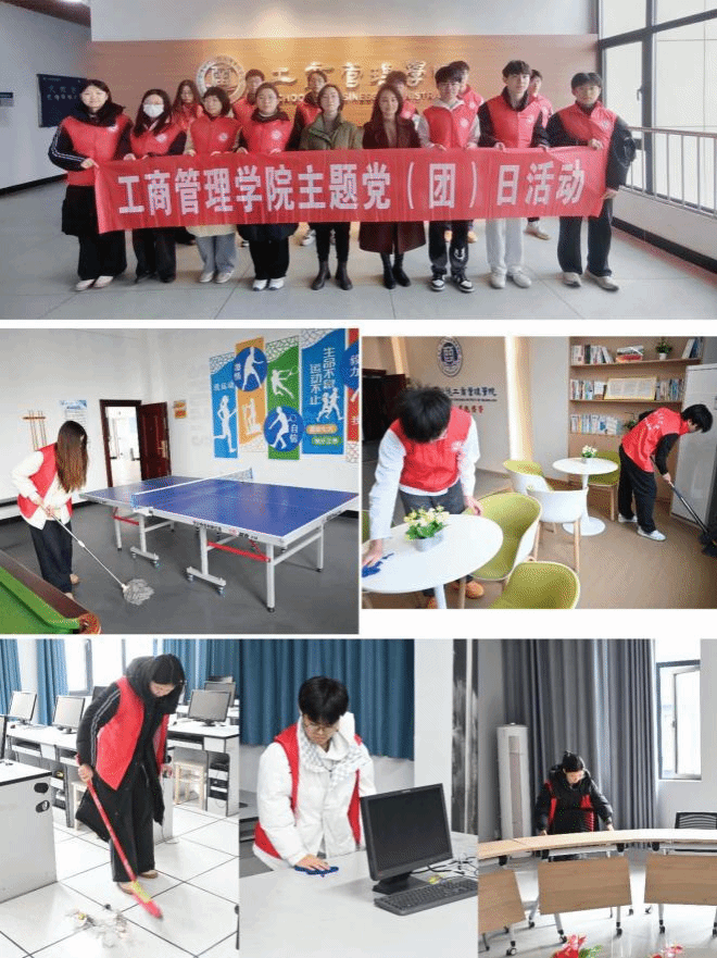 本学期开学初,工商管理学院开展了“用志愿赋能 向春天报到”主题党(团)日活动,营造整洁舒适的育人环境,传递志愿服务精神,来自各年级各专业的党员、团员化身志愿者来到学院行政办公区、教工之家、文体之家、教室及实验室实施文明清扫行动。