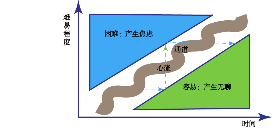 对于难的事情就容易焦虑,对于容易的就会无聊,对于难度适中的事情就容易让人体会到心流的感受,是做事情比较好的状态。