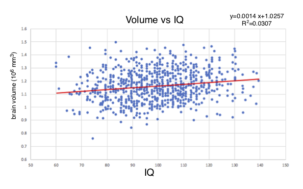 首先,智商越高,大脑容量很可能越大。2005年的一项大型分析显示,智商与大脑尺寸之间的相关系数为0.33。