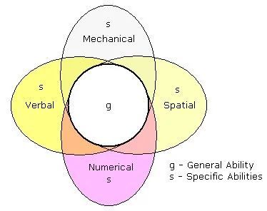 查尔斯·斯皮尔曼的智力模型,交集的g为一般智力