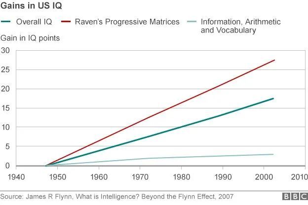 事实上,IQ并非完全固定不变。教育可以提高IQ,而且整个人口的平均IQ在过去100年以稳定的速度增长。因此,不同种族和国家之间的智商差异,可能是发展阶段、饮食营养和文化教育影响的结果。