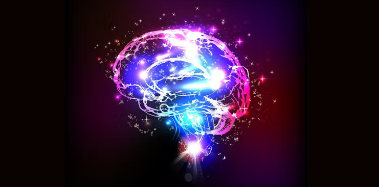 图示:在黑色背景下,大脑被红色和蓝色点亮。