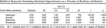 在实验2中,研究者探索了人们对自我复原力的自由归因是否在没有量表项提示的情况下仍会出现,并初步探究了对自我复原力的归因与对他人同情之间的关系。研究者让被试写下经历的两个困难生活事件,然后给其他在相似生活事件中挣扎的人写条信息。然后,研究人员对被试的自由反应描述中所涉及的内部、情境和关系归因的程度,以及在给他人的信息中对他人的情感支持程度进行评分。结果发现,关系归因和同情反应之间存在着显著正相关(表1)。