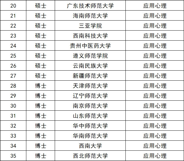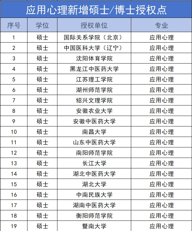 应用心理则新增了27个硕士学位授权点,8个博士学位授权点: