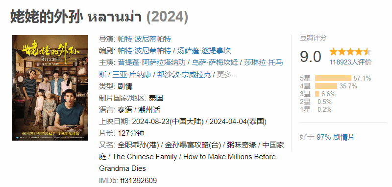 这可能是今年豆瓣评分最高的电影!身边很多人看过《姥姥的外孙》,都哭了。如果你还没看过,强烈建议移步电影院。