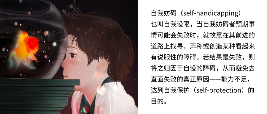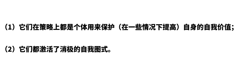 防御性悲观与自我妨碍的区别在于,自我妨碍是一种积极的妨碍成功的行为选择策略,如减少努力,关注与任务无关的行为等。