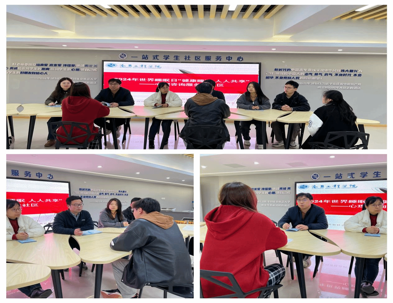 此外,心理中心全体教师走进一站式学生社区服务中心开展了心理咨询活动。通过将心理咨询服务送上“家”门的形式,倾听了我校师生睡眠困扰,找寻调整睡眠状态方法,共解睡眠问题带来的负面情绪,引导大家构建理性平和心态。