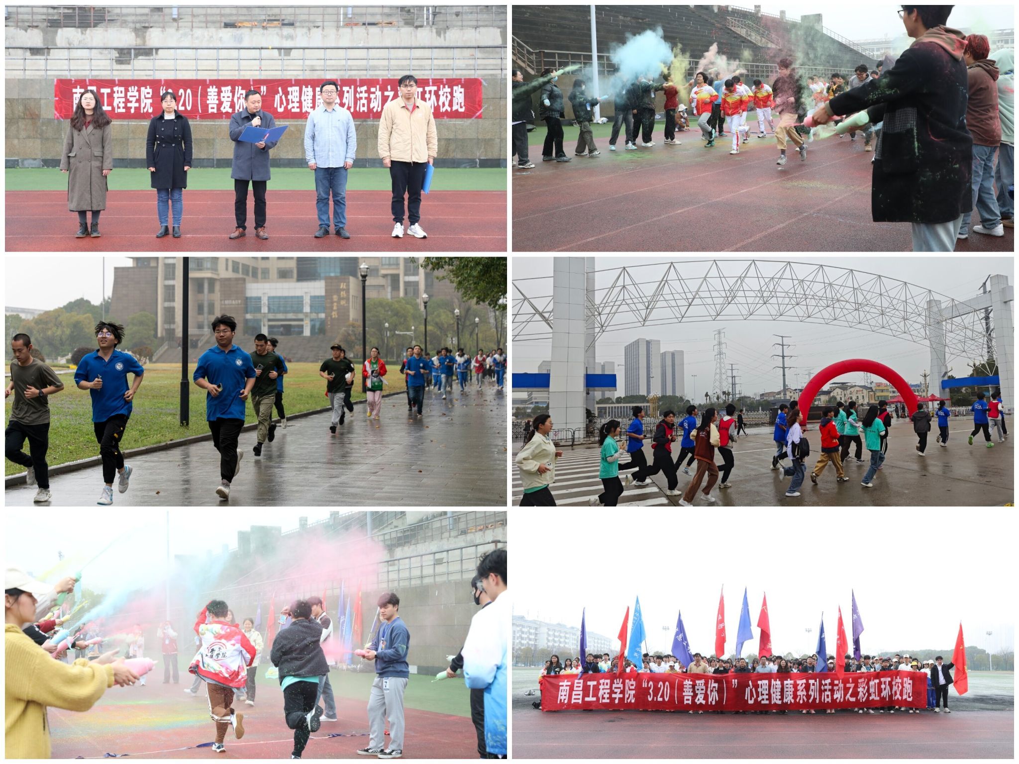 3月16日上午,我校“3.20(善爱你)”心理健康系列活动之彩虹环校跑在瑶湖校区主田径场举行。大学生心理健康教育与咨询中心全体老师及各学院代表400余人参加活动。