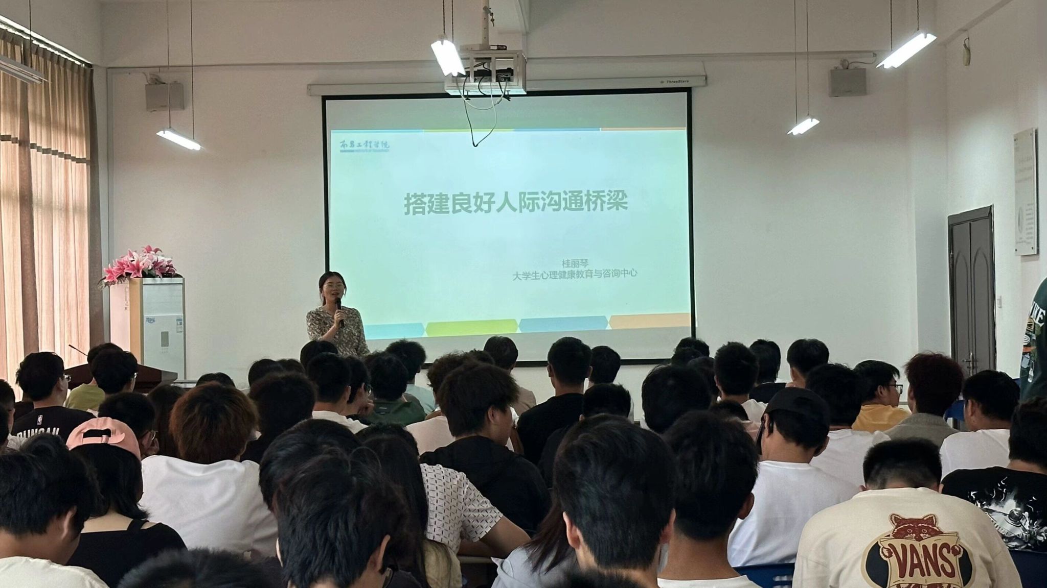 57日下午,2024年“5.25”心理健康系列活动之心理讲座在大学生活动中心A410顺利开展,本次讲座以“搭建良好人际沟通桥梁”为主题,心理中心专职教师桂丽琴主讲,来自水利、水保、土建学院的100多名学生参加。