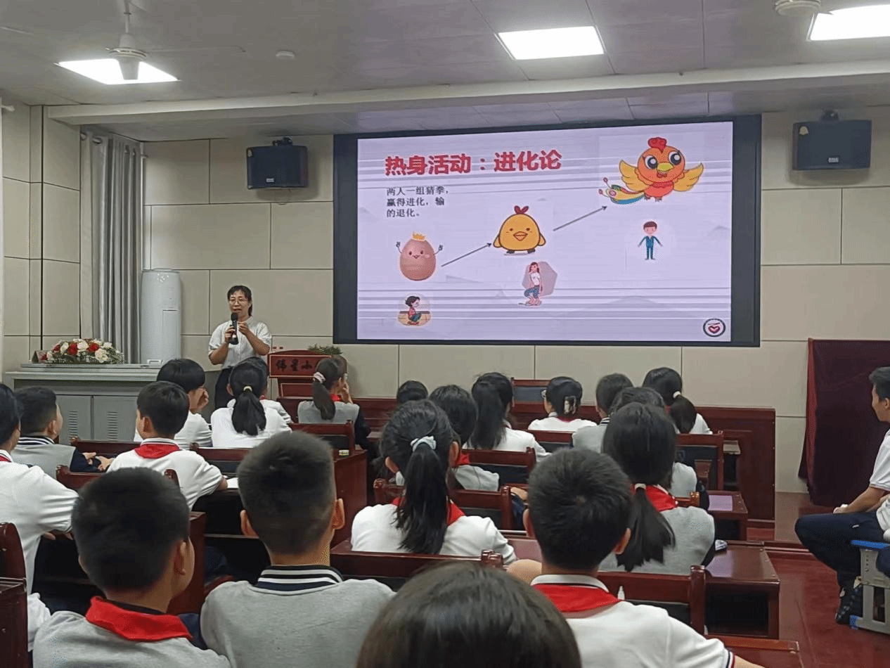 本次讲座,宋园园老师主要从认识生命、珍爱生命、积攒生命力量三个方面展开。讲座伊始,宋园园老师带领学生开展“进化论”的热身小游戏,学生们积极参与,现场气氛活跃。热身小游戏不仅拉近了老师与学生的距离,更引发了学生对生命的思考,引出本次讲座的第一个板块——认识生命。在这个环节中,宋老师通过播放精彩的小视频“新生命是如何诞生的”、开展有趣的的体验活动“关注身体”,让学生感受自己的生命,明白生命是什么。