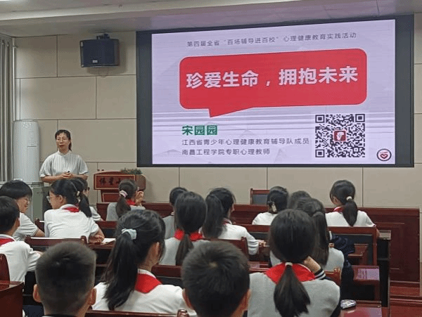 6月11日上午,由江西省文明办、江西省教育厅、江西省青少年心理健康教育辅导中心主办的第四届全省“百场辅导进百校”心理健康教育志愿实践活动在抚州市伟星小学会议室举行。我校心理健康教育与咨询中心的专职教师、江西省第四届青少年心理健康辅导队成员宋园园老师为学校六年级学生开展“珍爱生命,拥抱未来”主题讲座。