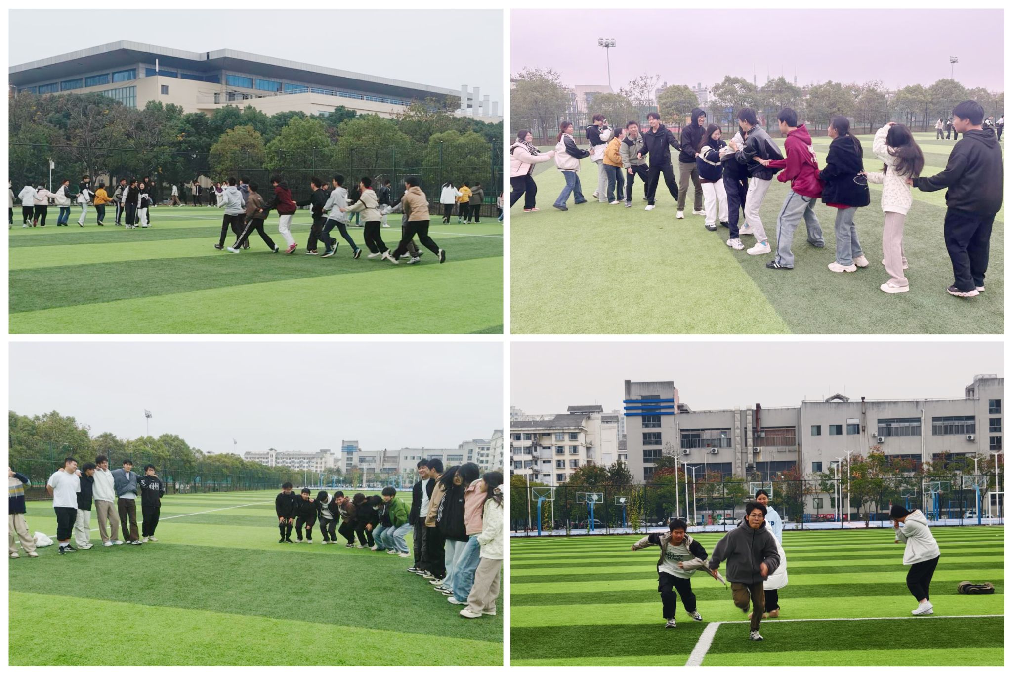 本次素质拓展活动设有欢乐萝卜蹲、老鹰抓小鸡、数字抱团三个游戏环节。欢乐萝卜蹲环节中,学生干部们被分为若干小组,各组反应迅速、团结协作,锻炼了反应能力,拉近彼此之间的距离;老鹰抓小鸡游戏里,学生干部们各显神通,在欢声笑语中,大家不仅锻炼了身体素质,更学会如何共同应对挑战;数字抱团考验的是学生干部们的反应速度和调度能力,同时也使各位学生干部们认识到相互支持的重要性。活动现场,同学们精神饱满,热情高涨,气氛热烈。