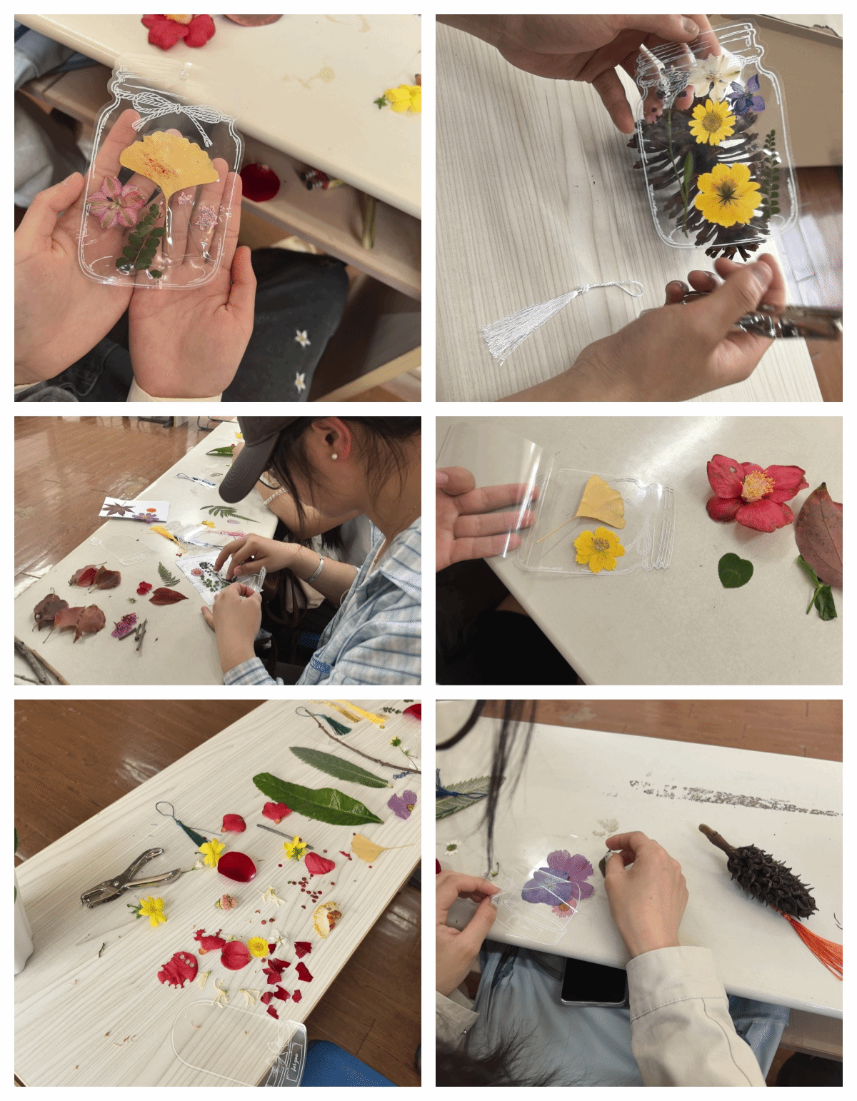 活动带领老师通过“滚雪球”的游戏让大家展开自我介绍,拉近彼此间的距离。之后引导大家激发五感,探索春日的奥秘,感知生命的珍贵。接着为大家分发活动素材,带领大家现场制作书签,封存春日美好记忆。