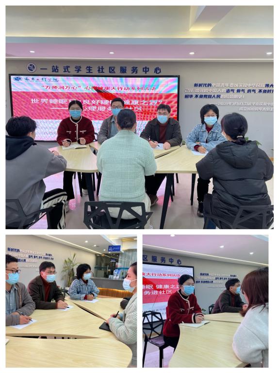 3月20日上午,大学生心理健康教育与咨询中心全体专职教师送心理服务进社区。心理中心教师多角度去了解到场师生睡眠认知状况,接收师生睡眠相关诉求。帮助大家合理辨别睡眠情况,纾解睡眠问题带来的负面情绪,改善睡眠环境,构建良好心态。