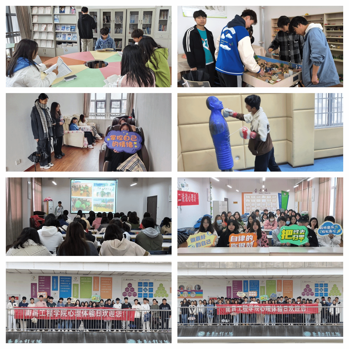 11月11日,我校心理体验日暨心理健康课程思政实践教学活动在大学生活动中心A405-A413顺利开展。2023级上课学生以班级为单位在引导人员的带领下依次参观了心理中心的沙盘游戏室、音乐放松室、科普阅览室、心理咨询室、团体辅导室、情绪宣泄室等10余间功能室,体验了沙盘治疗、音乐放松、心理科普知识阅读、心理咨询、团体辅导和情绪宣泄等心理服务项目。活动通过朋辈互动的方式,让同学们深入理解助人自助的理念,学习心理疏导的方法,关注心理健康。